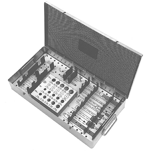 Anterior Cervical Fusion Kit Case Click Image to Enlarge | Anterior Cervical Fusion Kit Case No. C21-1001: 10" x 20" x 3" - black nylon coated lid, all instruments pictured, labeled and held in place by rubber bracketsRelated Instruments: A.C.F. Kit Case - Even MM P.L.I.F. Kit Case